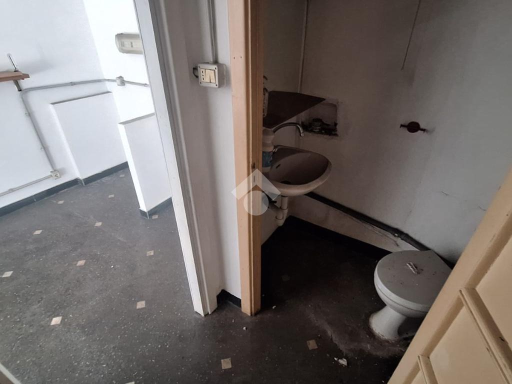 L'immobile, dotato di una vetrina a piano strada che è anche la porta d'ingresso, si presenta al suo interno luminoso e da riordinare ed è altresì fornito di servizi igienici da ristrutturare.