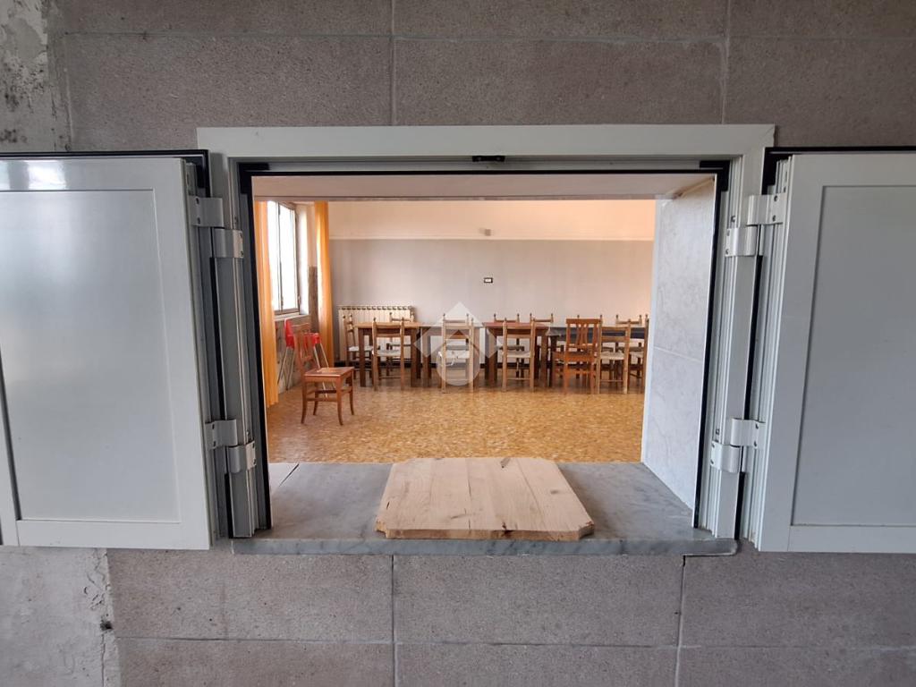 Giungendo il loco cattura immediatamente l'attenzione la bella veranda piastrellata, arredata di tavolini e sedie; ci accoglie poi in ingresso un grande spazio con bancone bar, da qui si accede all'ampia sala da pranzo (circa 68 Mq) ; troviamo a questo piano anche le due cucine, una per la ristorazione e una per la pizzeria, nonchè i servizi igienici .